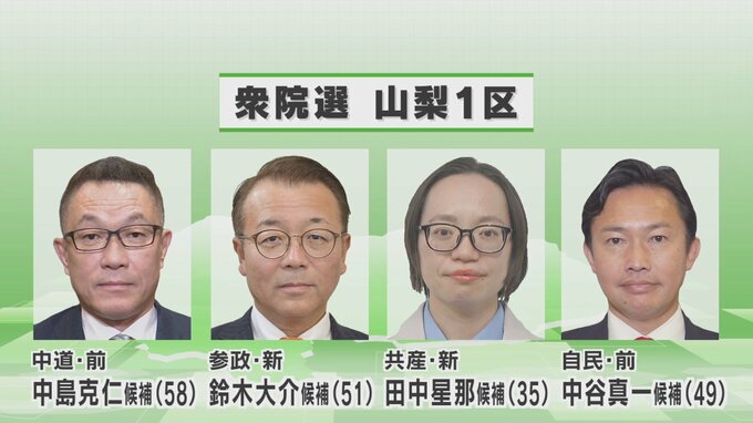 山梨県内ではこれまでに山梨1区に4人、山梨2区に2人が立候補を届け出ています。