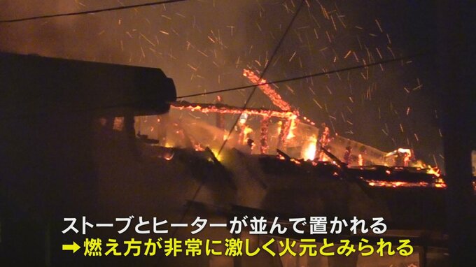 警察と消防が現場を調べた結果、ストーブとヒーターが並んで置かれていた場所の燃え方が非常に激しく、ここが火元とみられています。