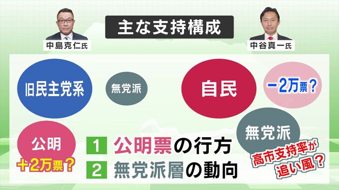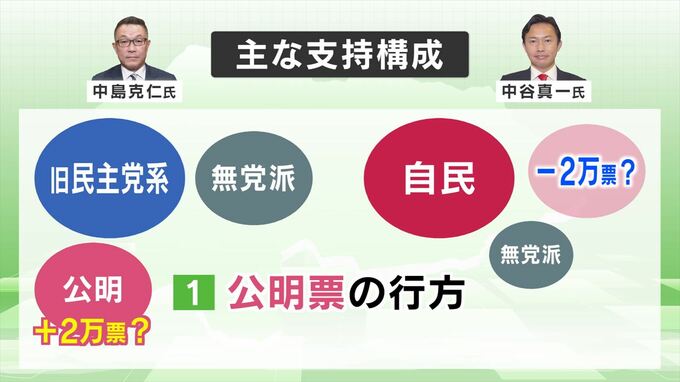 一方で、これまで公明票を取り込んできた中谷さんにとっては公明党の組織票が減る形となり、結果的に両者の差は4万票規模で動く可能性もあります。