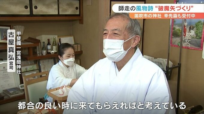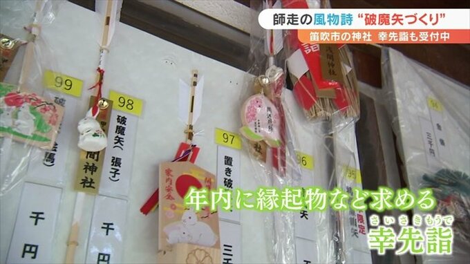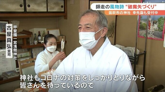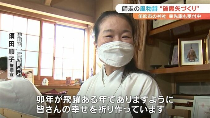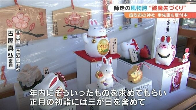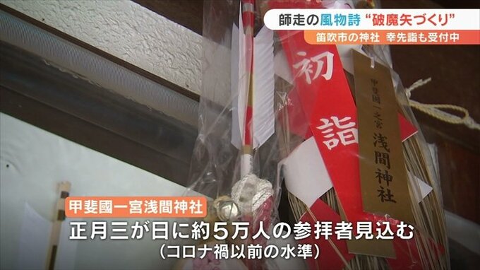 山梨県笛吹市の浅間神社では今、初詣の参拝者のための縁起物作りがピークを迎えています。