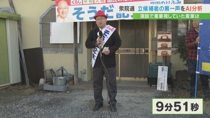 早田候補の第一声の時間は、9分51秒でした。