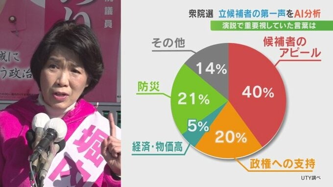 内訳を見ると、候補者のアピールが40%、次いで防災が21%、政権への支持が20%などとなっています。