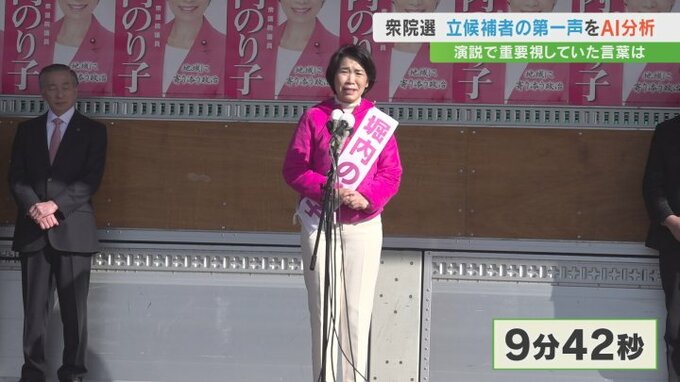 堀内候補の第一声の時間は、9分42秒でした。