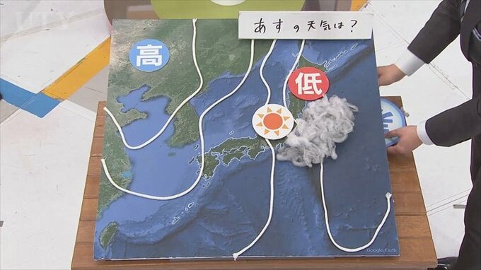 あすになると、この雲は次第に東へと離れていきます。ということはあすは日差しが届く時間が長くなる。