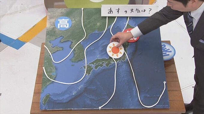 あすの天気を説明していきますと、西に高気圧、東に低気圧西高東低の気圧配置となりまして、この気圧配置は基本的には晴れの天気です。これはきょうも変わりませんでした。