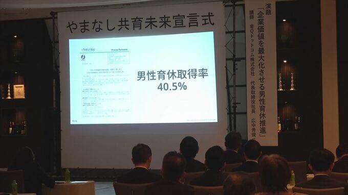 そして、国の共育プロジェクトの推進委員による講演も行われ、組織のトップが意識を変えることで育休の取得率があがるという事例が紹介されました。