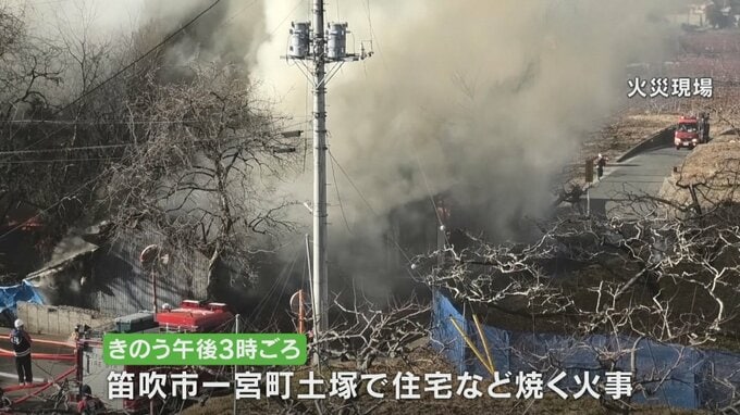 1日午後3時ごろ笛吹市一宮町土塚で住宅などを焼く火事がありました。