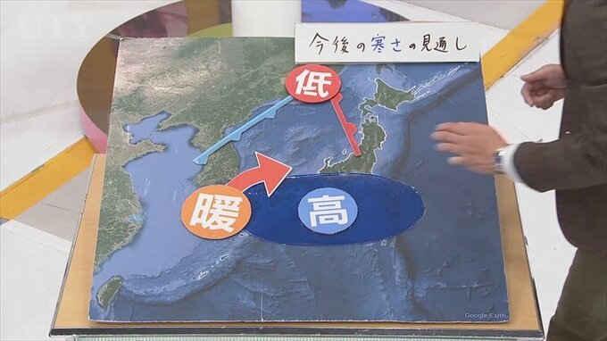 この気圧配置になると、北から冷たい空気=寒気が降りやすくなっていたんですが、この気圧配置が崩れます。