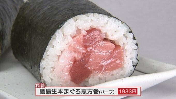 「手に取ってもらえる価格を意識」 恵方巻の具材が値上がり イクラ断念もほとんどの価格を据え置きの店舗も 2026年2月3日(火) 19:26 国内 節分の2月3日は8種類の恵方巻を販売し、買い物客が次々と手に取っていました。 店のおススメは玄界灘で育まれた長崎県産の本マグロの大トロ、中トロ、赤身が入った恵方巻です。