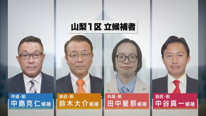 衆院選山梨1区に立候補しているのは前職2人と新人2人のあわせて4人です。