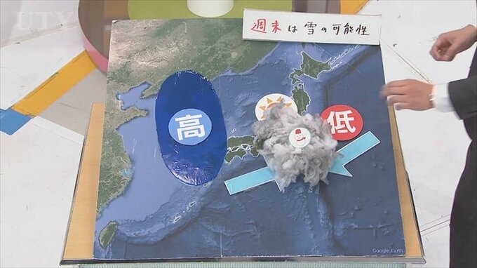 実はこの週末雪の可能性がありまして、気圧配置としては西に高気圧、東に低気圧の西高東低の気圧配置で、この気圧配置になると基本的には晴れることが多いんですが、