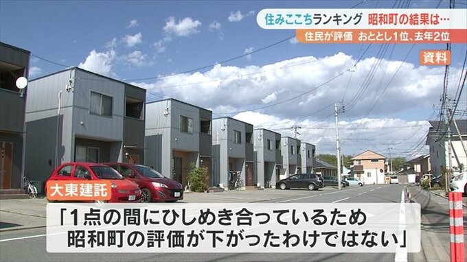 これについて大東建託は「1点の間に上位の街がひしめき合っているため、昭和町の評価が下がったということではない。昭和町のような上位の街の共通点は新興住宅地で大型ショッピングセンターがあること」と分析しています。