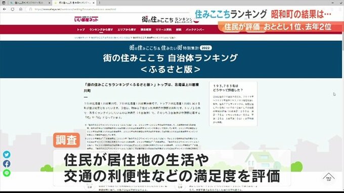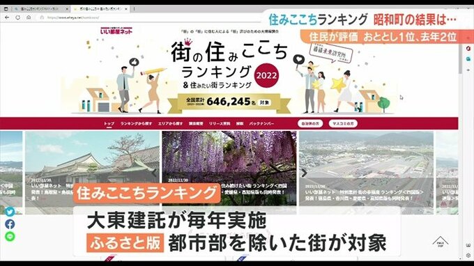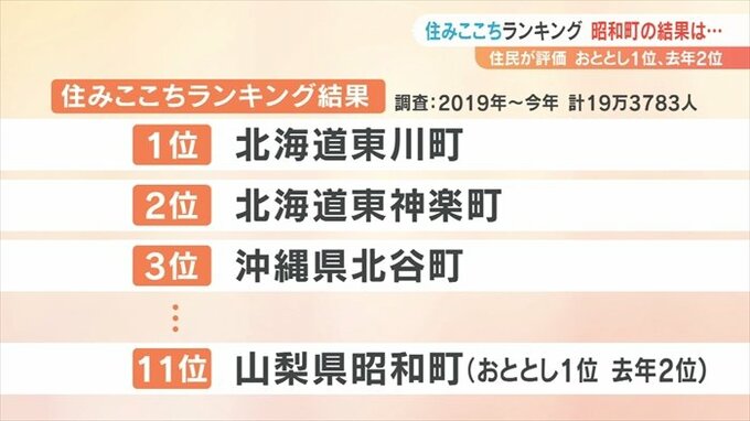 2019年から2022年のあわせて19万人余りの回答を集計した結果、1位は北海道東川町、2位は同じく北海道の東神楽町、3位は沖縄県北谷町でした。