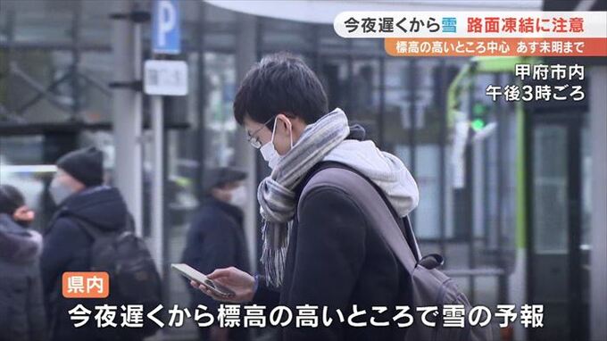 山梨県内は21日夜遅くから標高の高いところを中心に雪となる予報です。