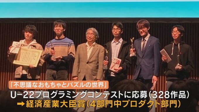 この作品は11月、IT企業などが主催する「U‐22プログラミング・コンテスト」で応募328作品中、4部門ある最優秀賞=経済産業大臣賞を受賞しました。