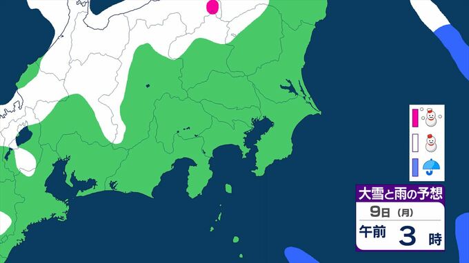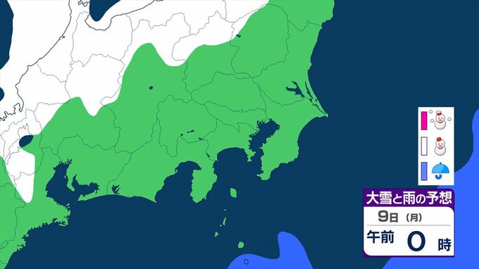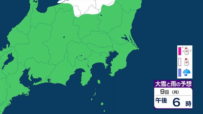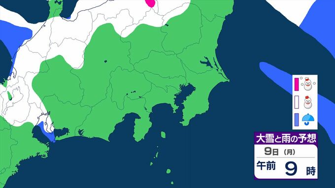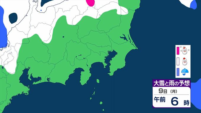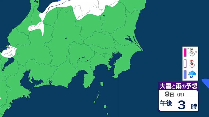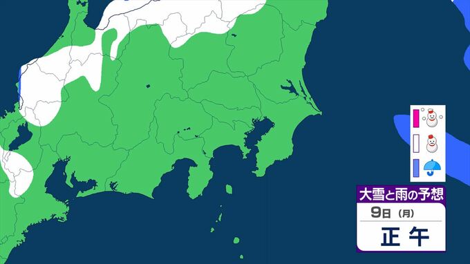 【大雪情報・更新】東京23区でも積雪となる所が 関東甲信は7日~8日にかけ 平地や伊豆諸島でも大雪となる所が 警報級の可能性も 【いつ・どこで?大雪と雨のシミュレーション】 2026年2月6日(金) 11:52 国内 天気 大雪と雨のシミュレーション 9日(月)