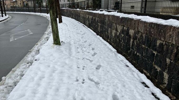 人に踏み固められ、滑りやすくなっています。歩道と車道の段差にも注意が必要です。