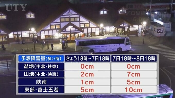 多いところですけども、あすの夕方にかけて東部・富士五湖は5cm、中北、峡東の山地は2cm。峡南で1cm、さらにあすの夕方からあさっての夕方にかけては、東部・富士五湖10cm、中北、峡東の山地で7cmとなりますので単純に足したら5cmから15cmくらいとなりそうです。