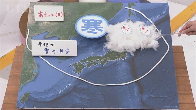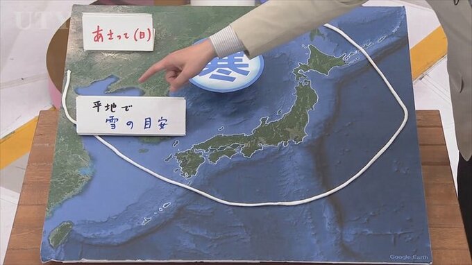 あさって日曜日はさらに上空の冷たい空気=寒気が強まりまして、今度は盆地も含めて、平地で降水があれば雪が降る目安が入ってくるんです。