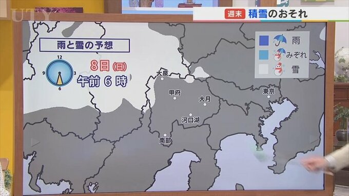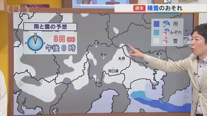 午後0時また東部・富士五湖のあたりで雪の降り方が強まります。ただ、その後は雪は止んできまして今度は北よりの風が強まって、さらに寒さが厳しくなります。