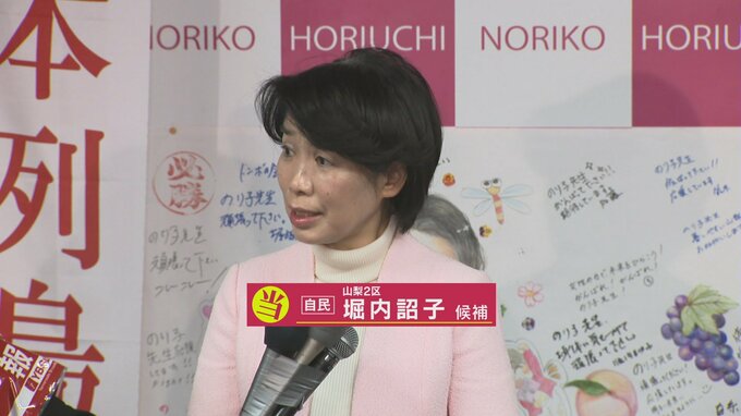 8日に投票が行われた衆議院選挙・山梨2区で当選が確実となった堀内詔子氏は支持者に感謝を述べました。
