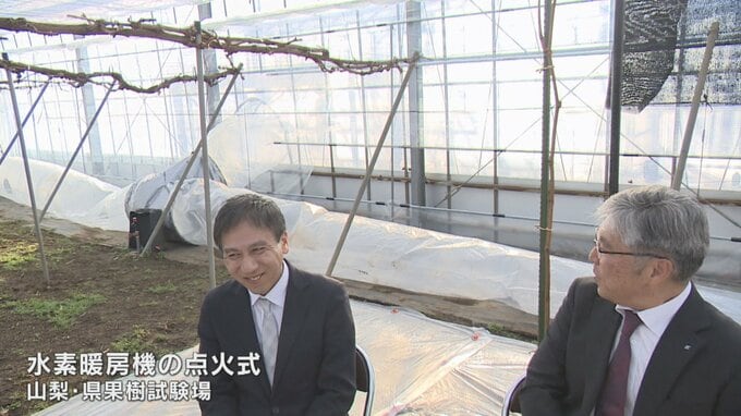 山梨県の果樹試験場で、二酸化炭素を排出しない農業の実証実験がスタートしました。