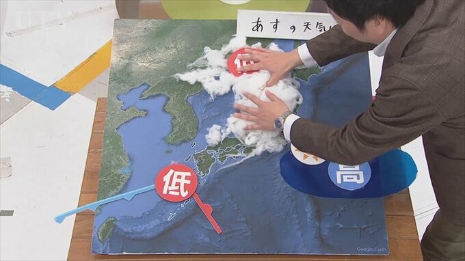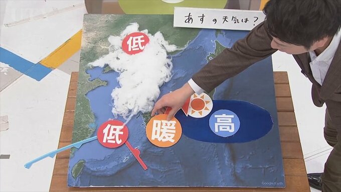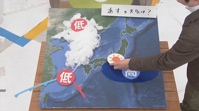 高気圧は時計回りに風が吹きますからあすは南の方から暖かい空気が流れ込みやすくなります。これによって気温が上がって寒さは緩みます。