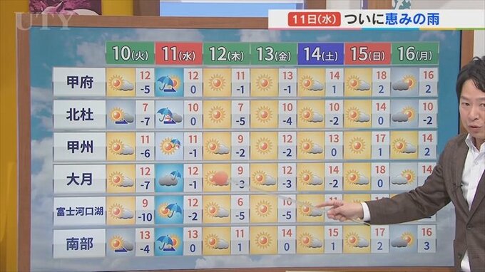 あさって水曜日が午前中を中心に雨や雪となりそうです。12日以降は晴れる日が続き、特に15日の日曜日は甲府の最高気温が18℃予想。これは4月上旬並みの気温です。ですからまた春がやってくるということになりそうです。