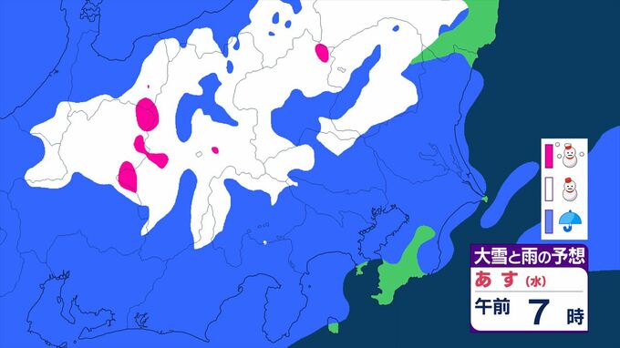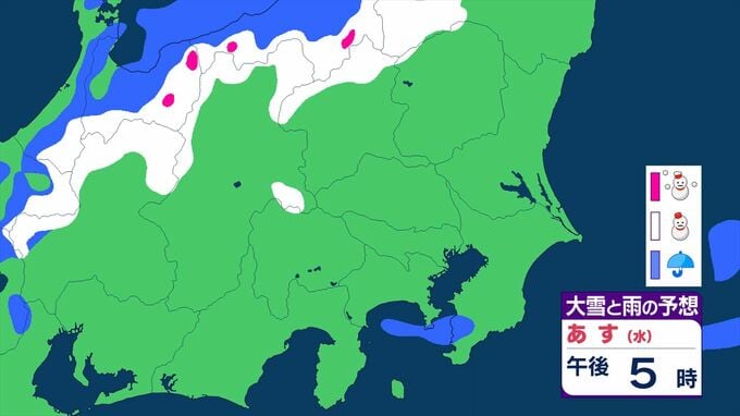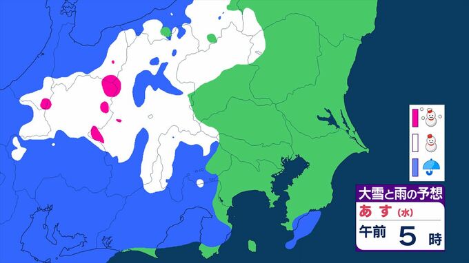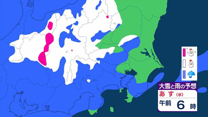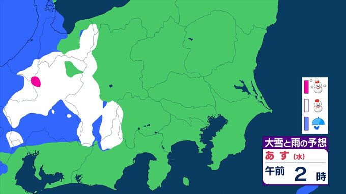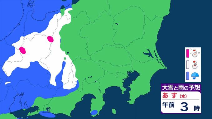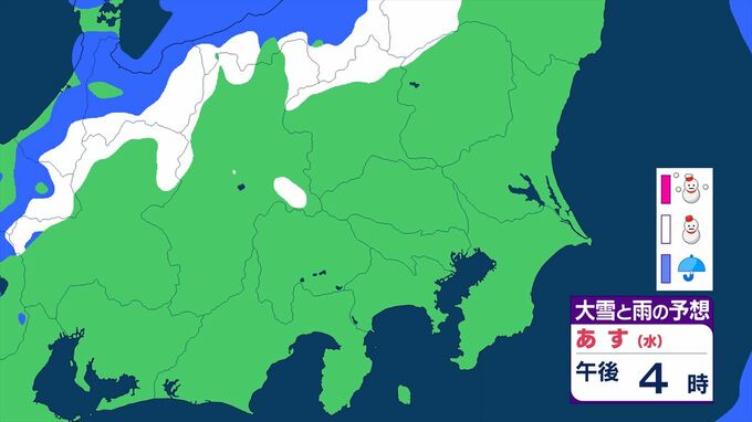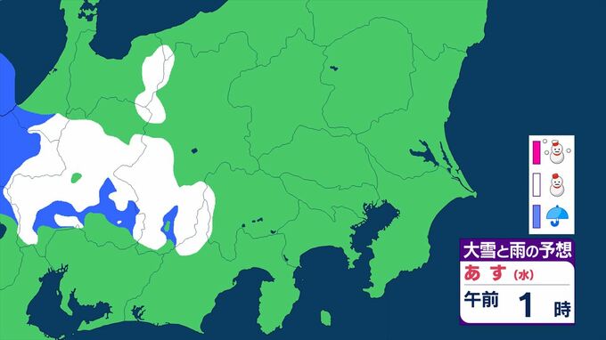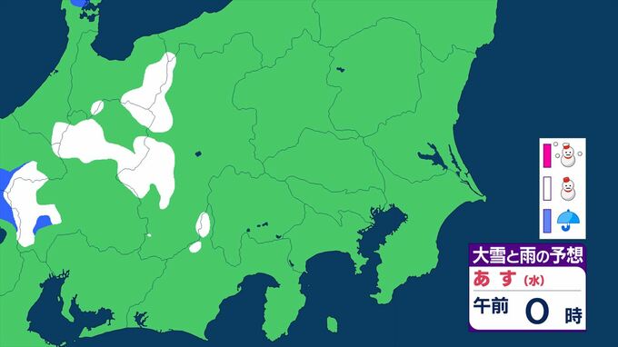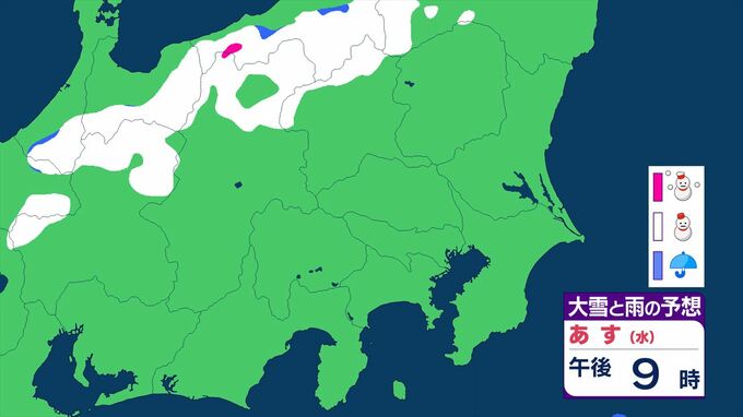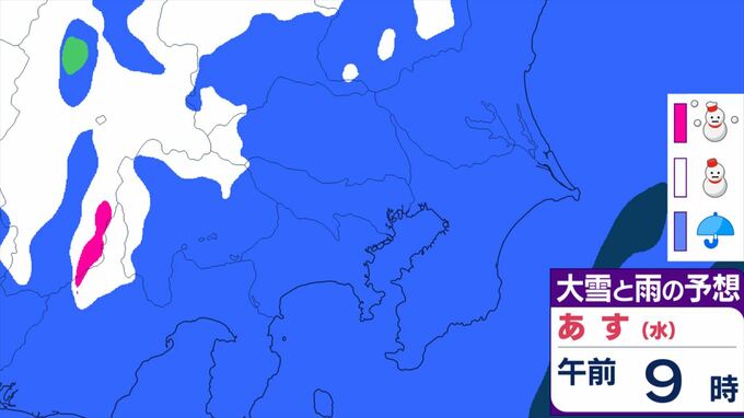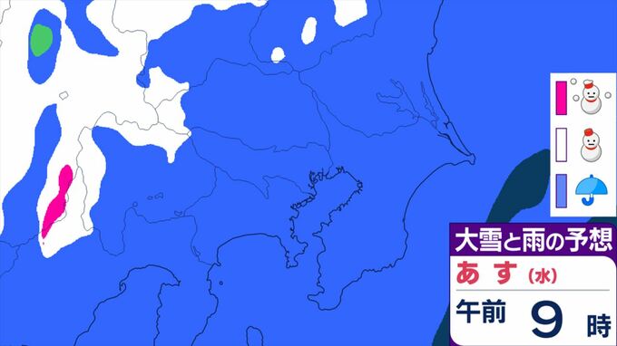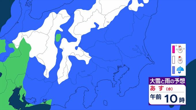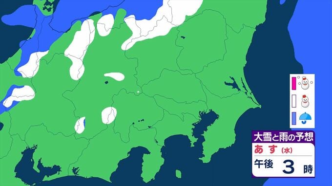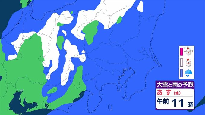 【関東甲信】11日祝日の天気 曇りや雨または雪で、雷を伴う所が 前線を伴った低気圧が本州の南を東北東へ 【大雪と雨のシミュレーション】 2026年2月10日(火) 11:24 国内 天気 大雪と雨のシミュレーション 11日(水)午後9時まで 1時間ごと