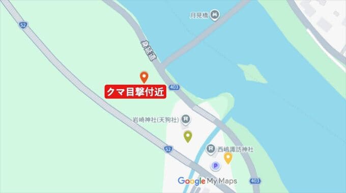 目撃された場所は西嶋地内の月見橋付近で、西側の山の方へ向かっていったということです。
