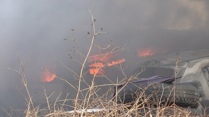 【速報】甲府市内で火事 車両置き場の車やタイヤが延焼中
