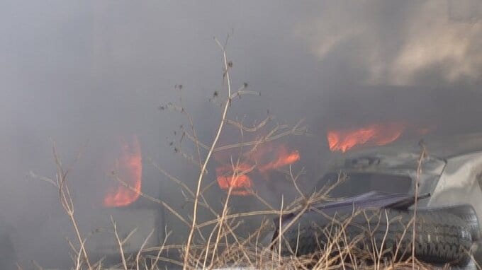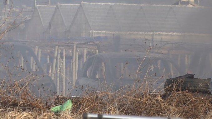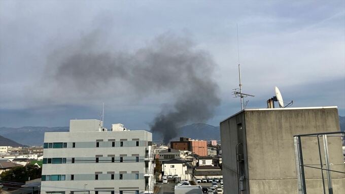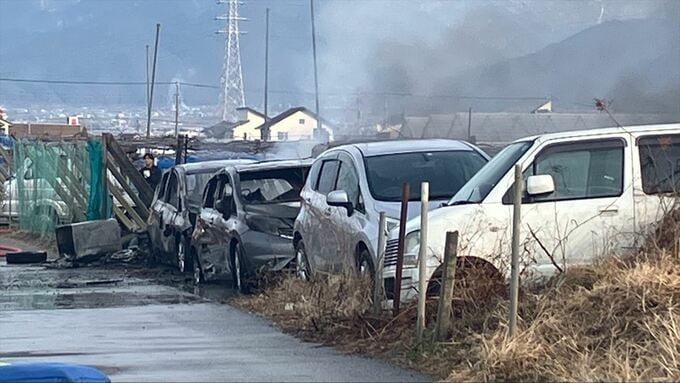 【速報】甲府市内で火事 車両置き場の車やタイヤが延焼中