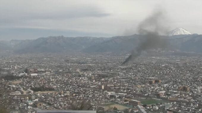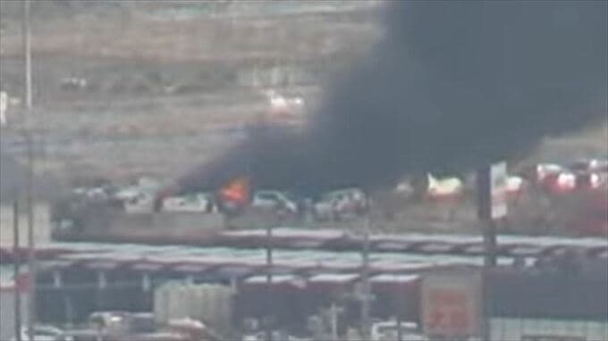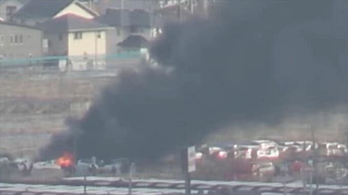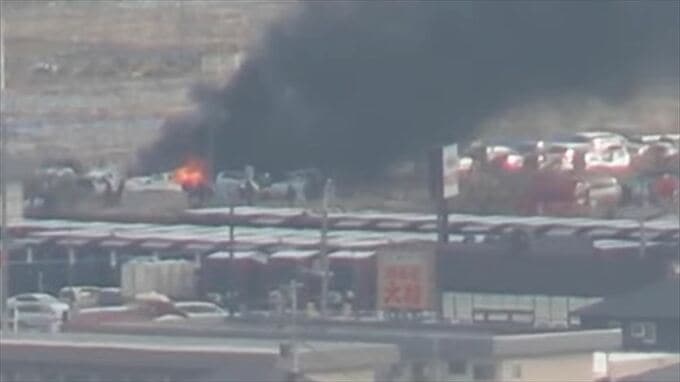 【速報】甲府市内で火事 車両置き場の車やタイヤが延焼中