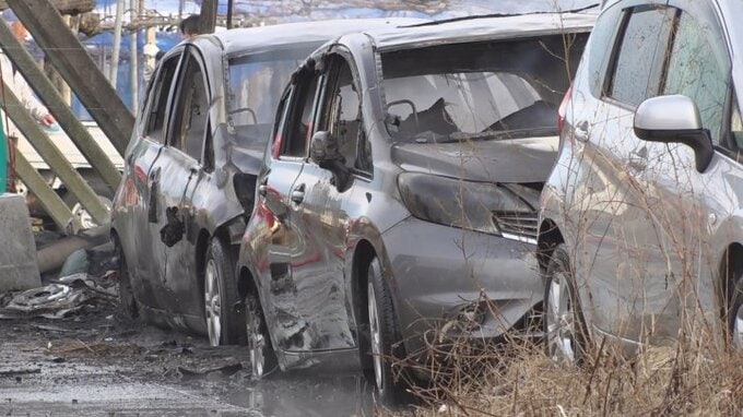 「爆発音と黒い煙」 少なくとも9台の車とタイヤが燃える 廃車置き場で火事 山梨