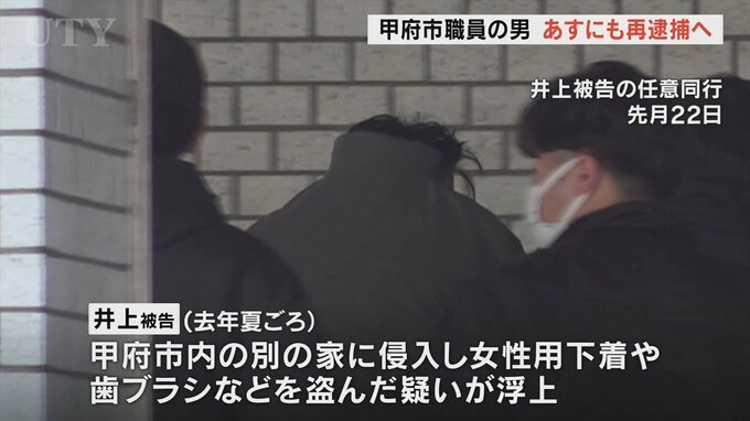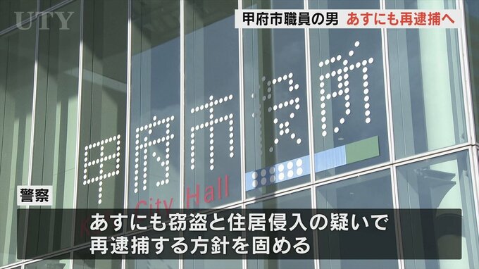 甲府市職員の男がアパートに侵入して女性用の下着を盗んだ疑いで逮捕された事件でほかにも別の家に侵入し女性用の下着や歯ブラシなどを盗んだとして警察が男をあすにも再逮捕する方針を固めたことがわかりました。