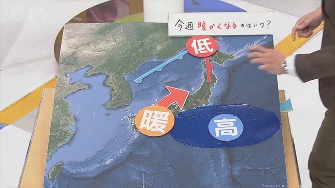 この気圧配置になってくると今度は高気圧は時計回りに風が吹きますから南から暖かい空気が流れ込みやすい。つまりきのうおとといと同じような春の暖かさのタイミングがまた出てきそうです。