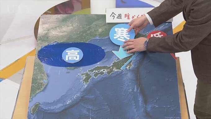 西に高気圧、東に低気圧の気圧配置だと低気圧は反時計回りに風が吹きますから、北から冷たい空気=寒気が流れ込んできやすくなりますが、これは一時的です。