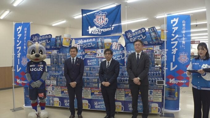 大手ビール会社と地元スーパーが連携してヴァンフォーレ甲府の応援企画を展開することになりました。
