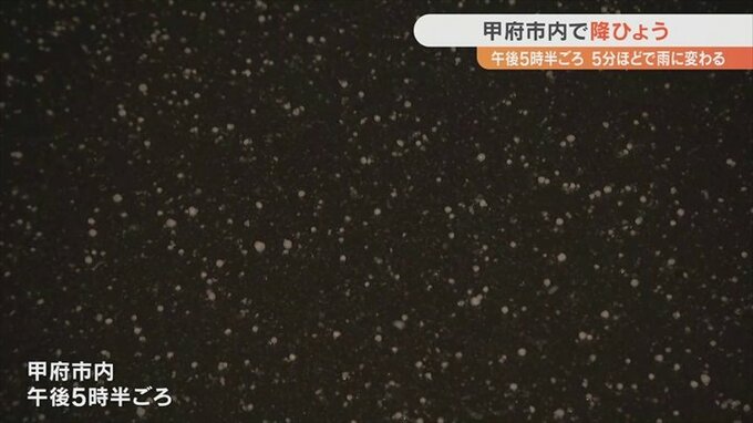 甲府で降ひょう 直径1cmほどとみられ、5分ほどで雨に To view this video please enable JavaScript, and consider upgrading to a web browser that supports HTML5 video 2022年12月22日(木) 18:00 国内 22日午後、甲府市内でひょうが降りました。 地面を叩きつける白い粒。ひょうです。 午後5時半ごろ甲府市内の映像です。ひょうは直径1cmほどとみられ、5分ほどで雨に変わりました。