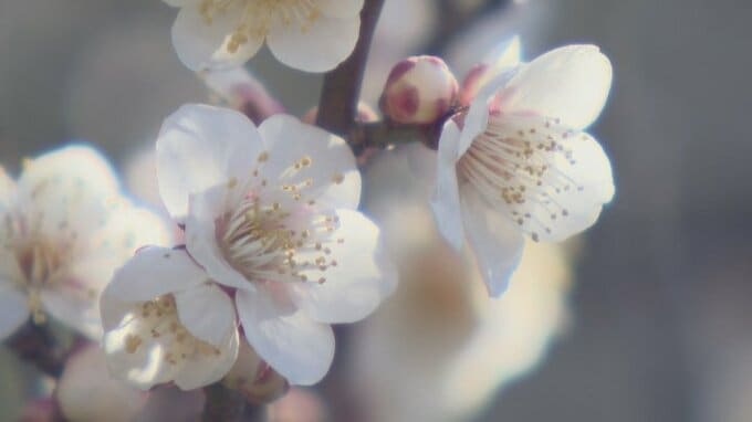 5万平方メートル、東京ドーム1個分の敷地に、およそ30種類・2000本のウメの木があり、いまは早咲きの寒紅梅やしだれ梅などが満開となっています。