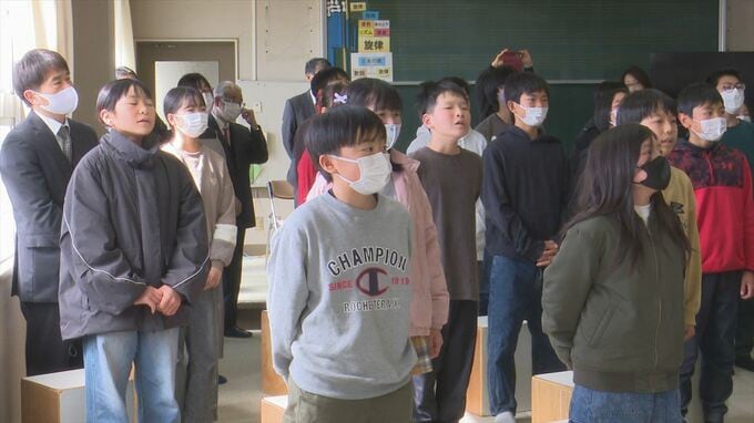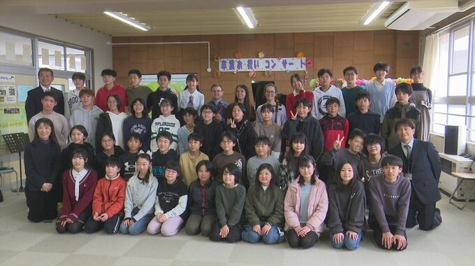 世界で活躍するオーストリアの若手演奏グループ「アクツィオ・ピアノ・トリオ」が、ピアノ三重奏曲など4曲を披露したほか、生演奏に合わせて児童たちが校歌を歌いました。