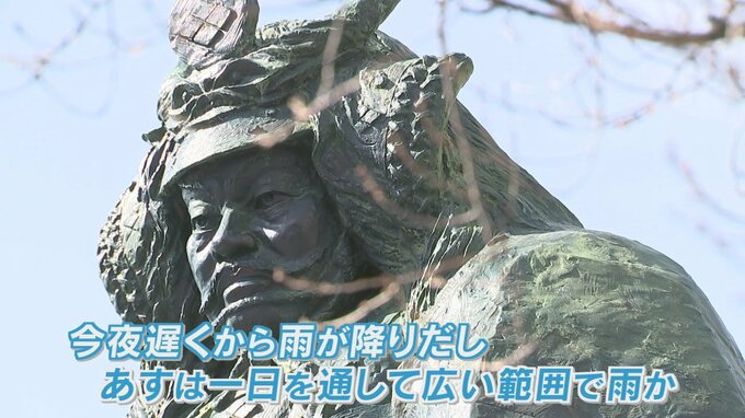 一方、前線の影響を受けて天気は下り坂で、今夜遅くから雨が降り出すところがあり、あすは一日を通して県内の広い範囲で雨となる見込みです。