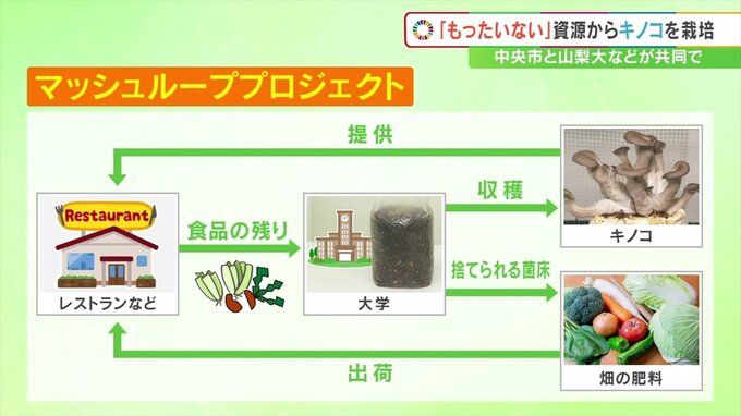 キノコの栽培を通してこれまで捨てられていた“もったいない”資源が、ほとんど捨てられることなく循環するという意味を込めて「マッシュループプロジェクト」と名付けました。