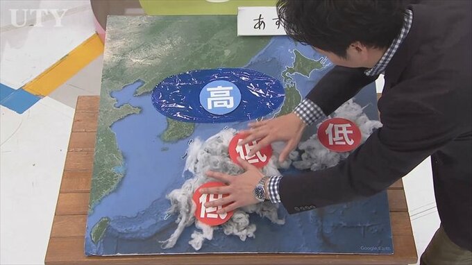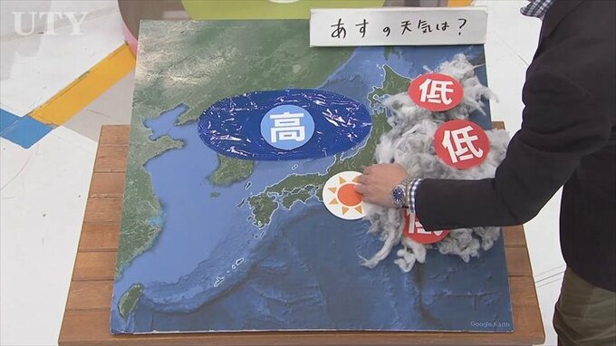 高気圧は時計回りに風が吹きますから、あすは中北を中心に風が強まる予想となっていますので、洗濯物は飛ばされないようにしっかり固定をお願いします。