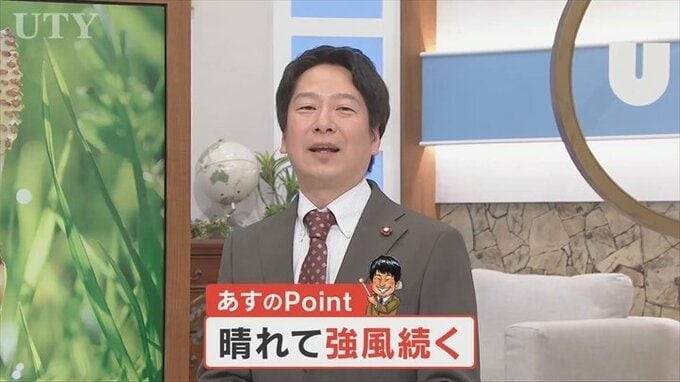 晴れて強風が続く見込みです。