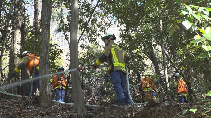 山梨県内や全国で相次ぐ山林火災を受け、笛吹市で大規模な火災に対応するためドローンなどを活用した消火訓練が行われました。