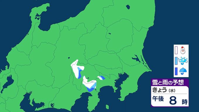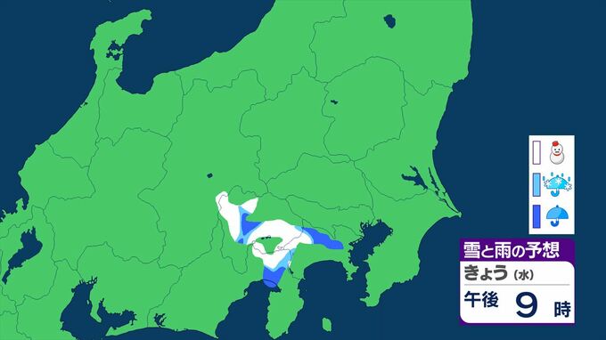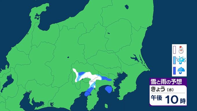 【関東甲信の雪情報】11日夕方から雨や雪の降る所が 東京、神奈川、山梨、埼玉、群馬、栃木、茨城、千葉、長野 【雪と雨のシミュレーション】 2026年3月11日(水) 11:06 国内 天気 雪と雨のシミュレーション 11日 シミュレーションは11日11時45分現在 最新の気象情報をご確認ください。