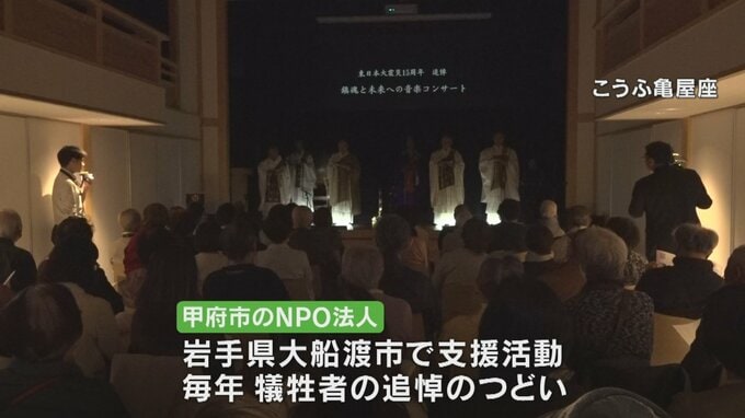 甲府市で災害支援活動に取り組むNPO法人では、被災した岩手県大船渡市で支援活動を行った縁で、毎年 東日本大震災の犠牲者を追悼する集いを開いています。