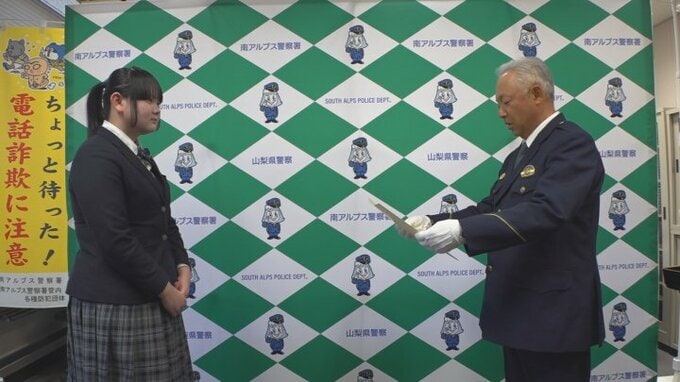 「おばあちゃん、この6万円分 何に使うの?」アルバイトの高校生が“とっさの判断” コンビニのカウンターで30分説得 詐欺被害を防ぐ 2026年3月12日(木) 19:07 国内 こうした鋭い感覚が被害防止に繋がったとして南アルプス警察署は、11日、深澤さんとローソン南アルプス清水店に感謝状を贈りました。