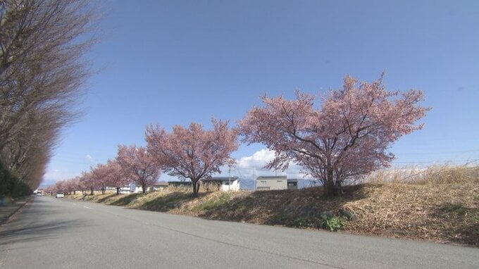 「やっぱり良いものですね、癒やされます」 川沿い1.2キロで咲き誇るオカメザクラ 例年より1週間ほど早く満開 山梨 2026年3月12日(木) 17:18 国内 暮らし・マネー 甲府市宮原町を流れる鎌田川に沿うように、およそ100本のオカメザクラがピンク色の花をつけ咲き誇っています。